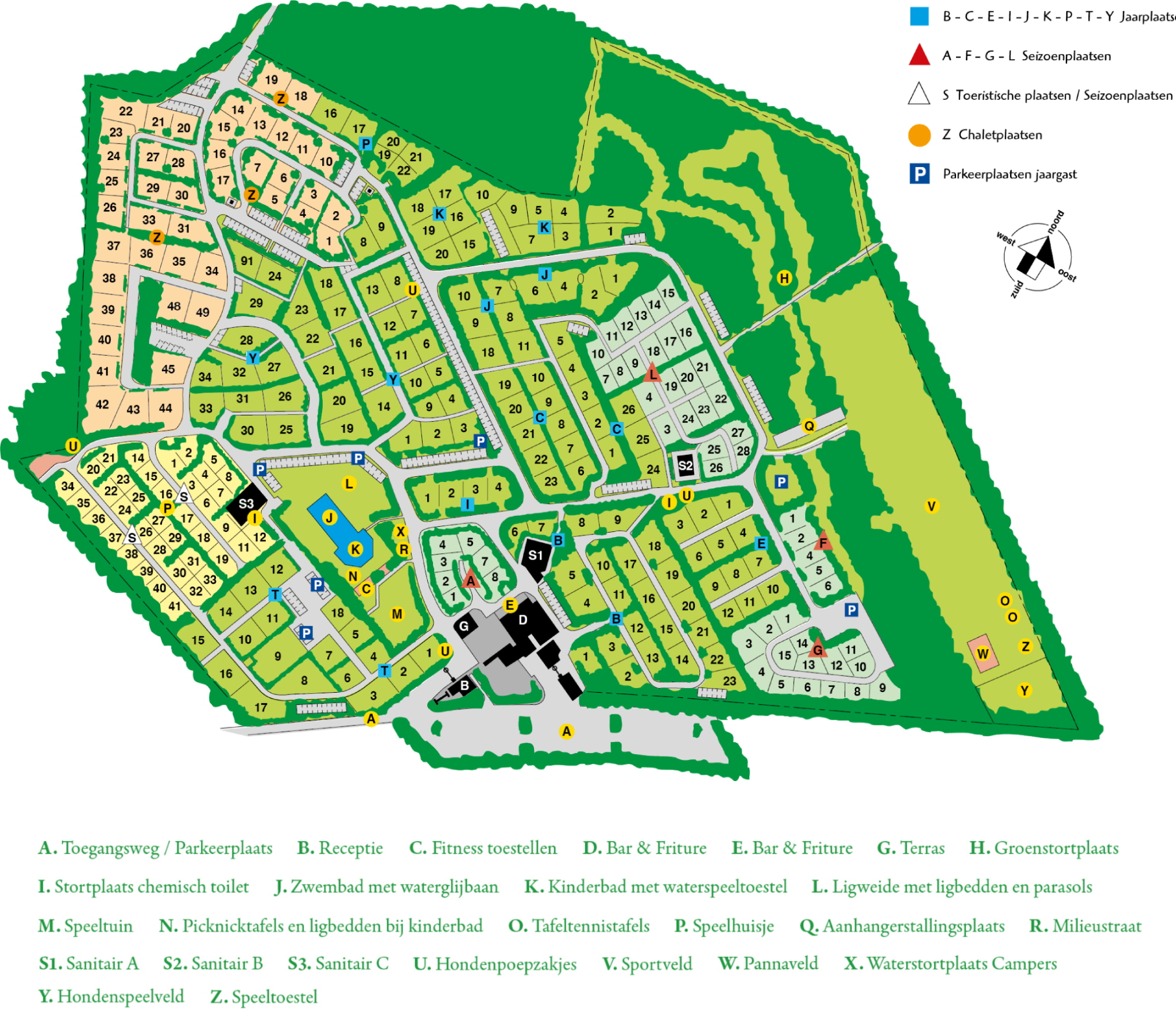 Bekijk de plattegrond en vind snel de voorzieningen op het park. Gebruik de legenda of zoekfunctie om locaties te filteren.
